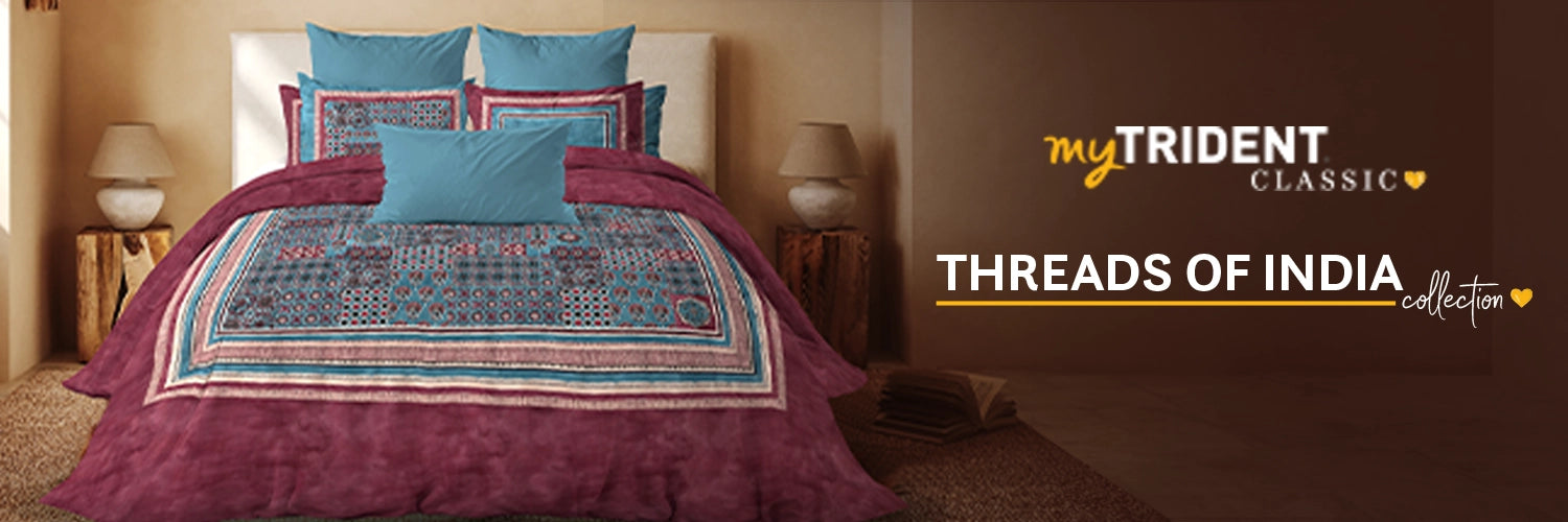 Classic Threads of India King Bedsheet Set, Kantha| 210 TC Cotton| 4 Pillow Covers