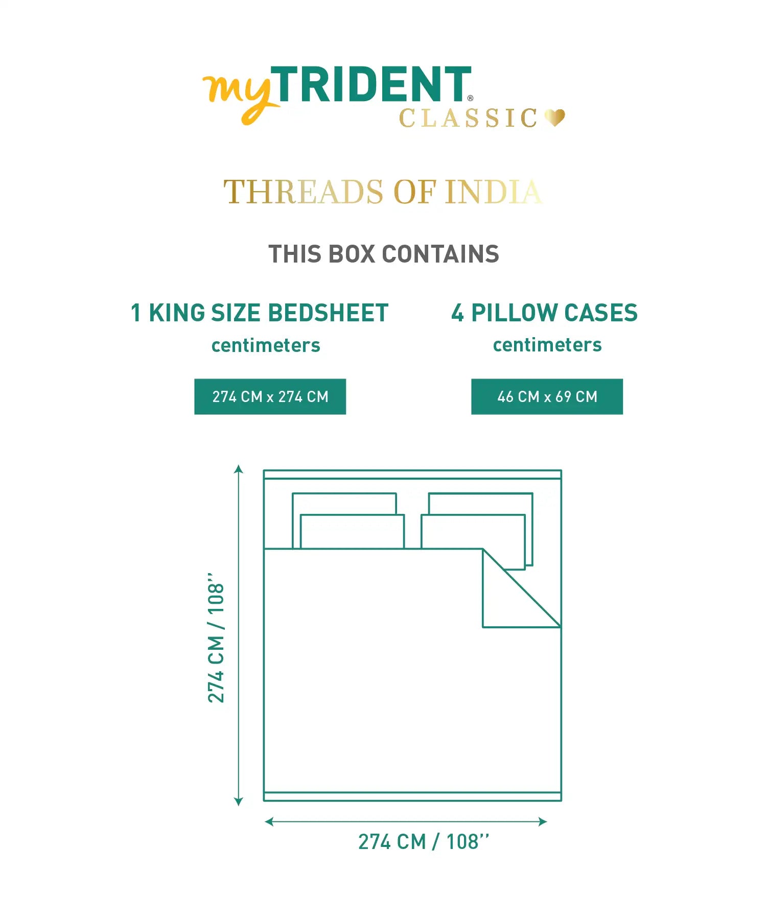 - Effortless Elegance, Easy Care - Maintain the vibrant beauty and luxurious feel of your myTrident Threads of India bedding with simple wash care. Machine wash with mild detergent in warm water and tumble dry on a low setting. Avoid harsh bleaches to preserve the integrity of the fabric and prints, ensuring lasting freshness and softness for years to come.