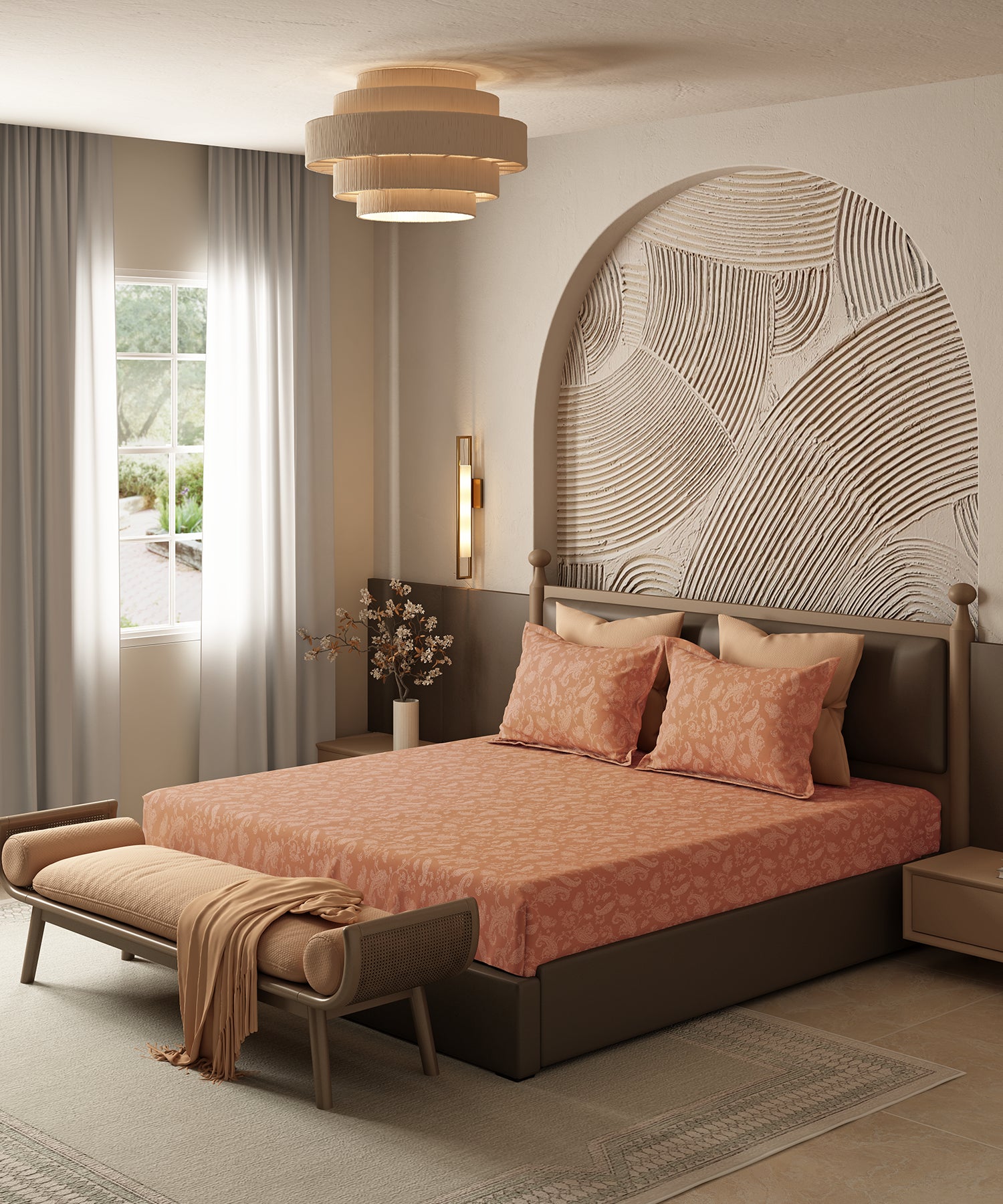 Home Essential Pastel Poetry Floral Bedsheet, NITARA PAPAYA|144TC Cotton| 2 Pillow Covers
