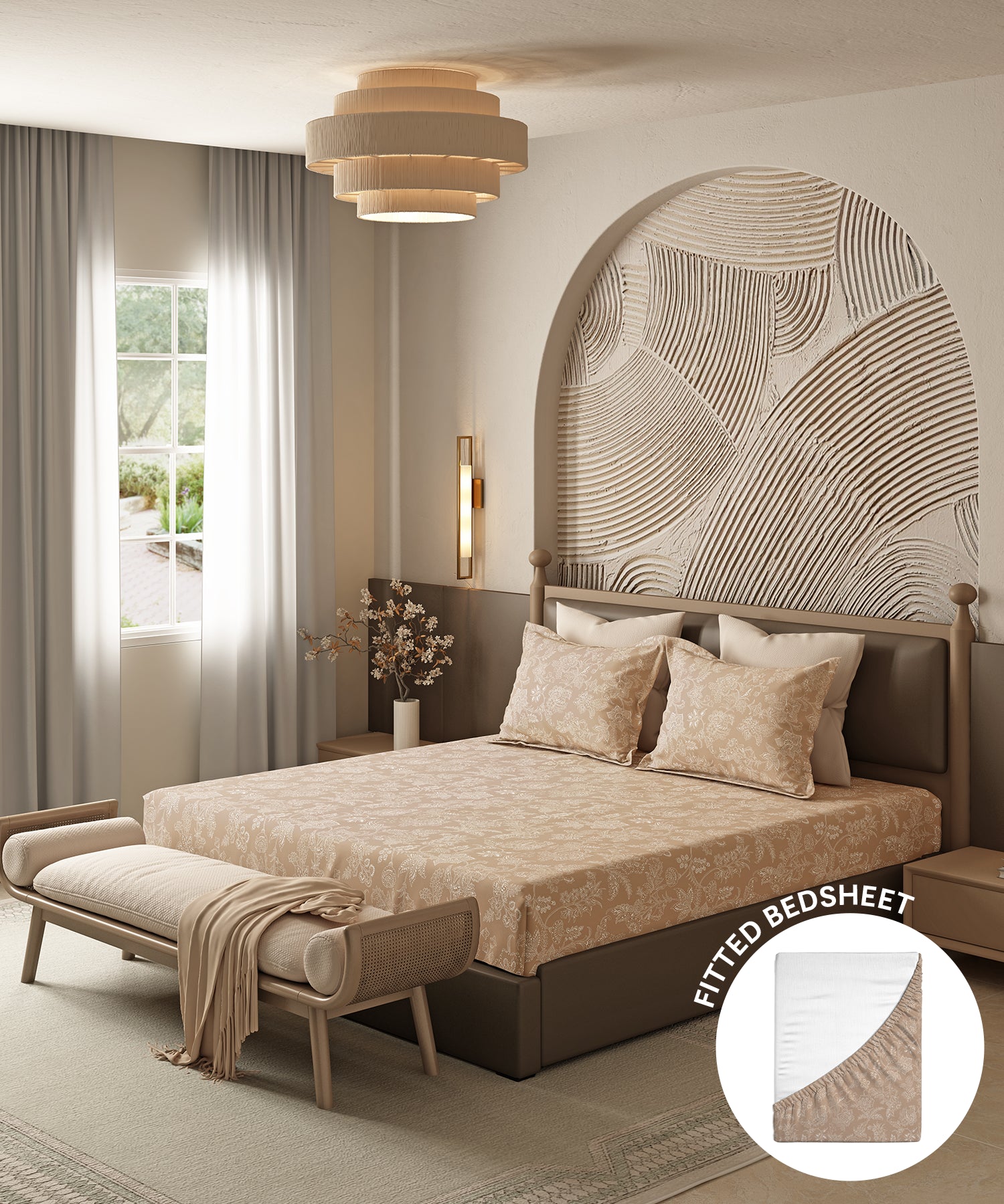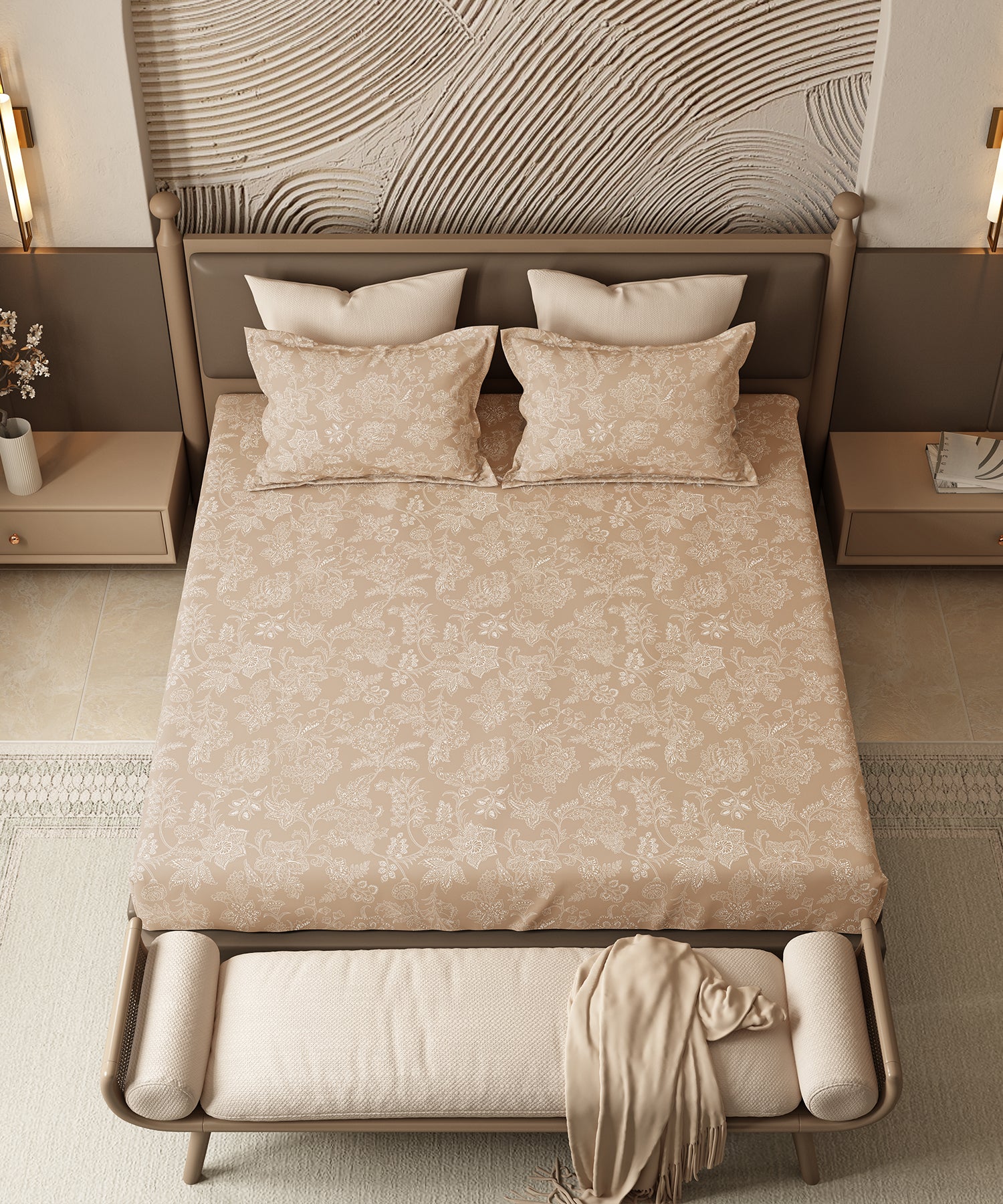 Home Essential Pastel Poetry Floral Fitted Bedsheet,IRAJA BISCOFF|144TC Cotton| 2 Pillow Covers