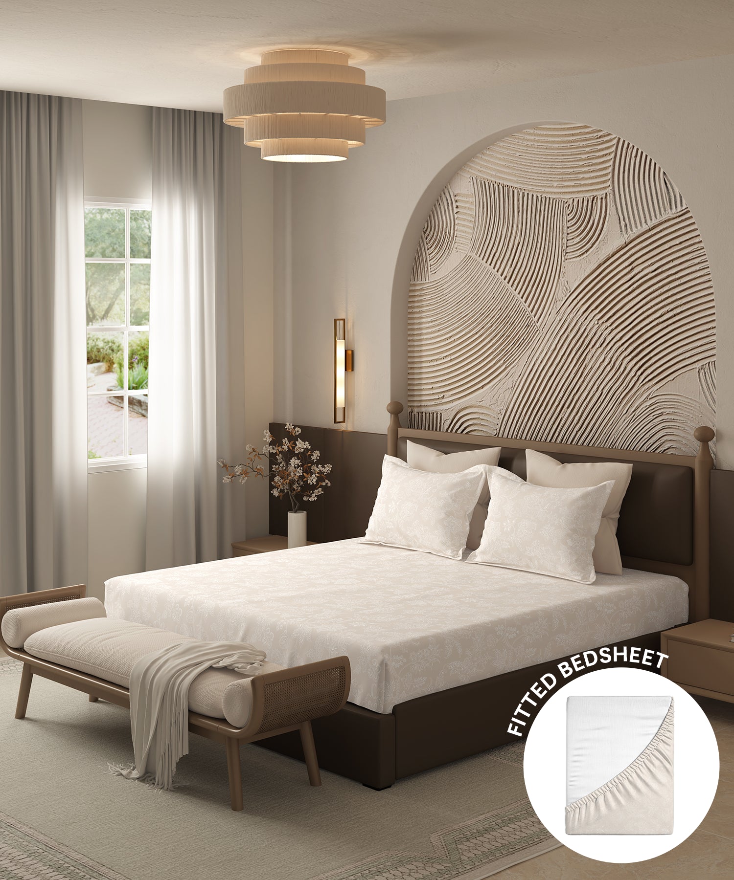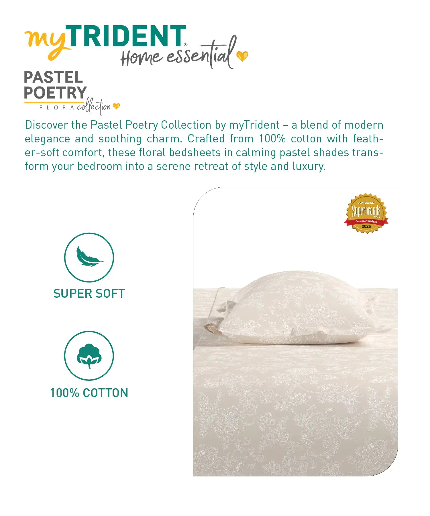 Home Essential Pastel Poetry Floral Fitted Bedsheet,IRAJA BUTTER|144TC Cotton| 2 Pillow Covers