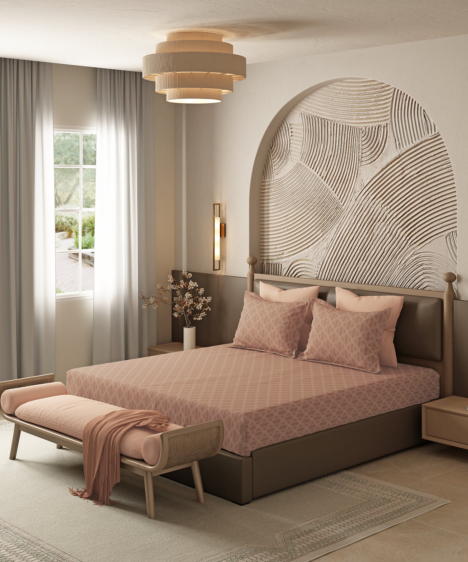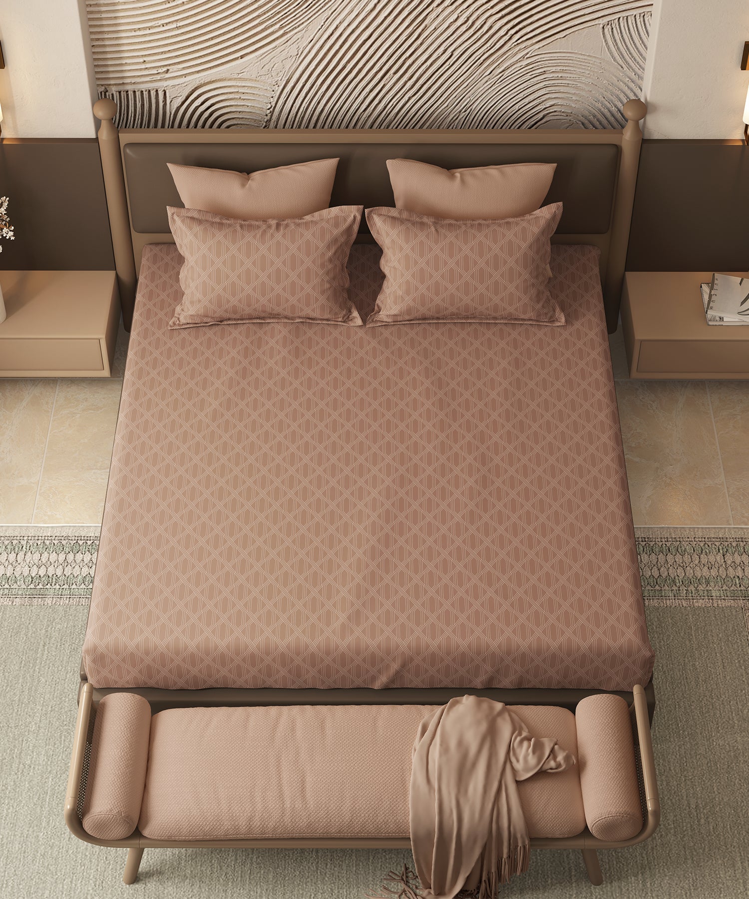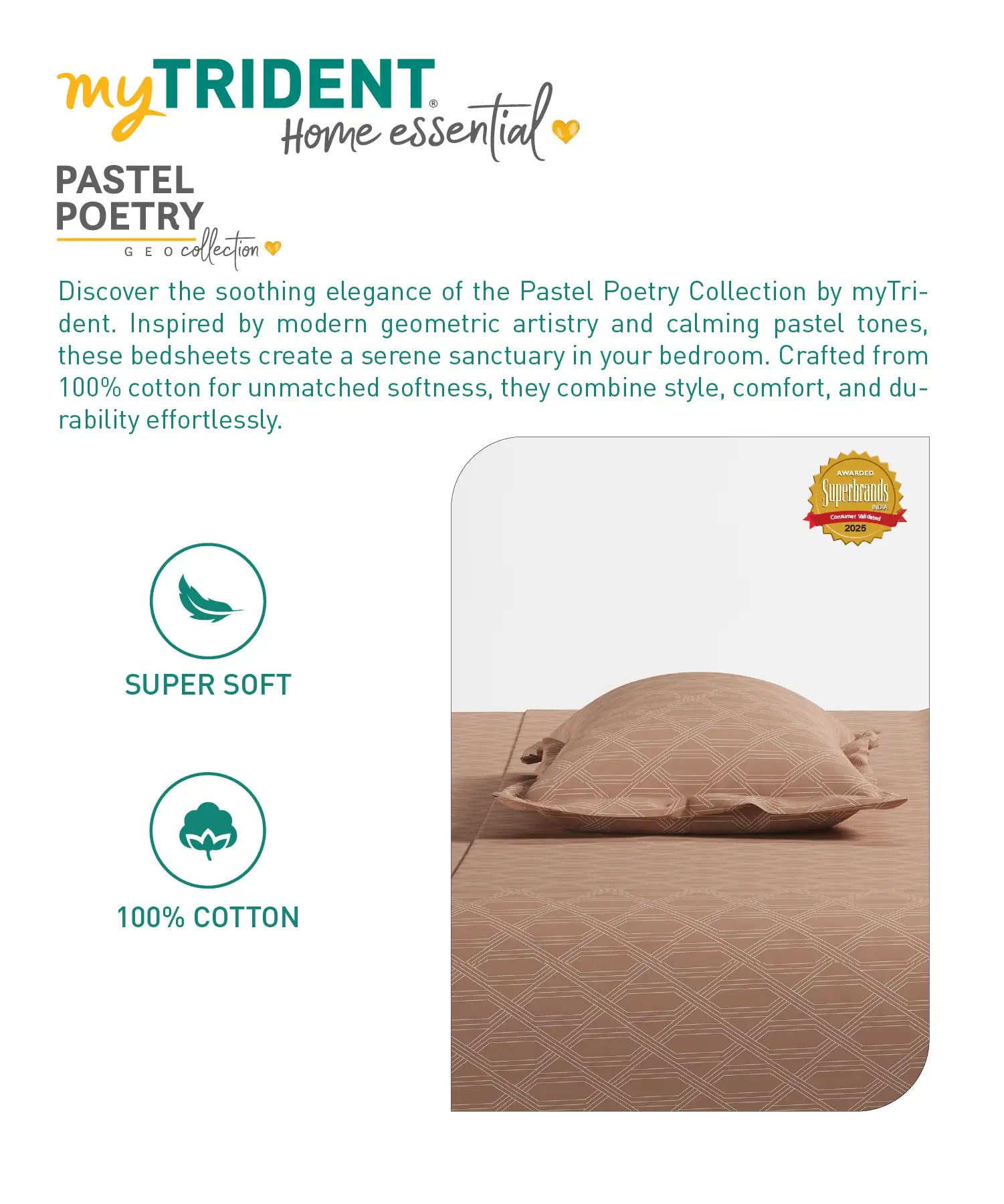 Home Essential Pastel Poetry Geo Bedsheet, Aldo Gingerbread|144TC Cotton| 2 Pillow Covers