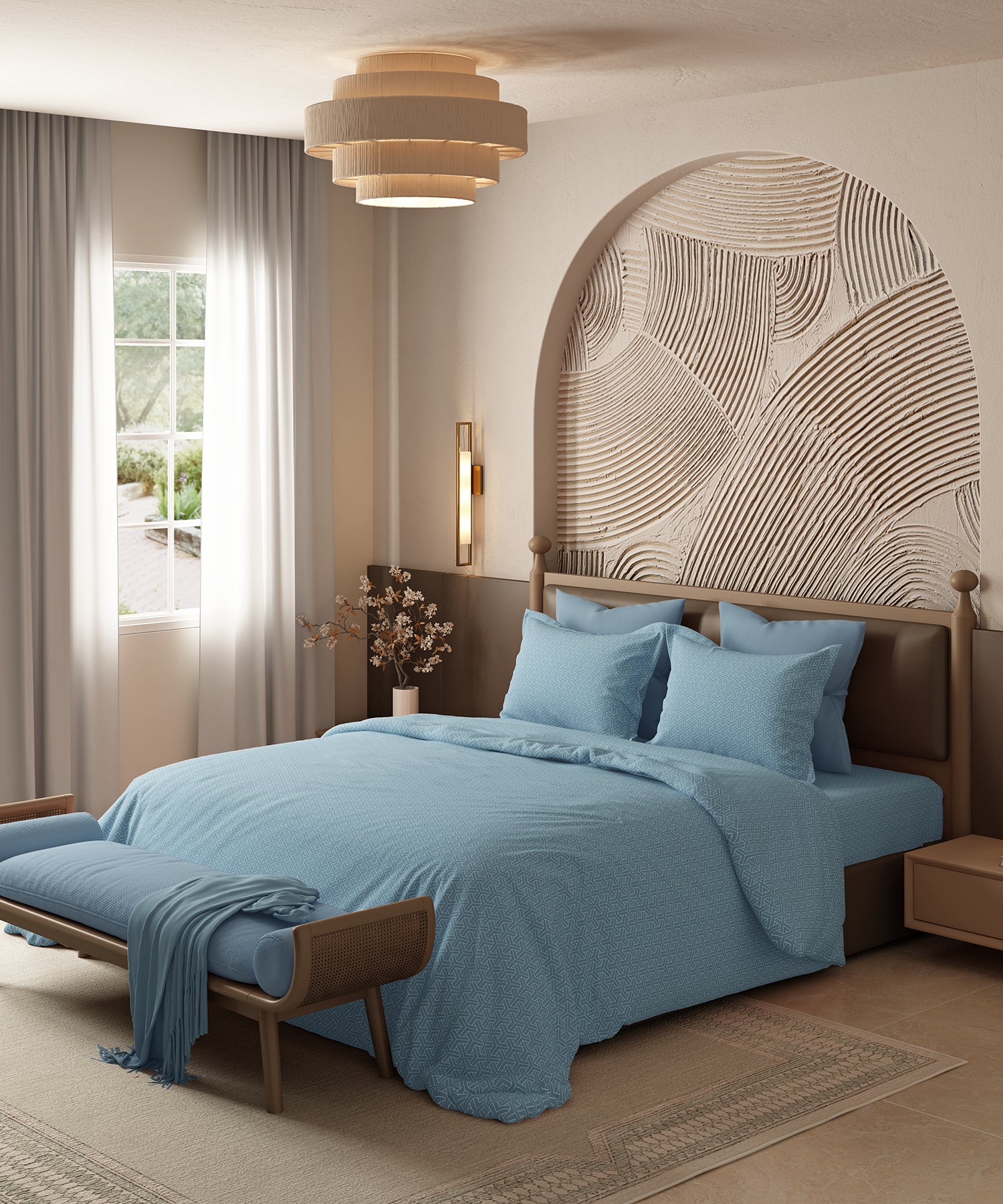 Home Essential Pastel Poetry Geo Bedsheet, Maison Copenhagen|144TC Cotton| 2 Pillow Covers