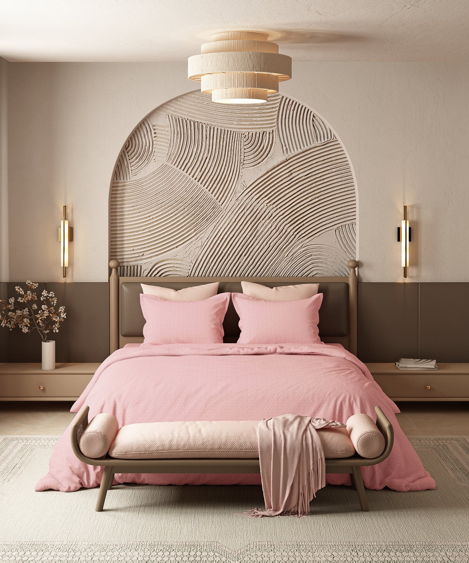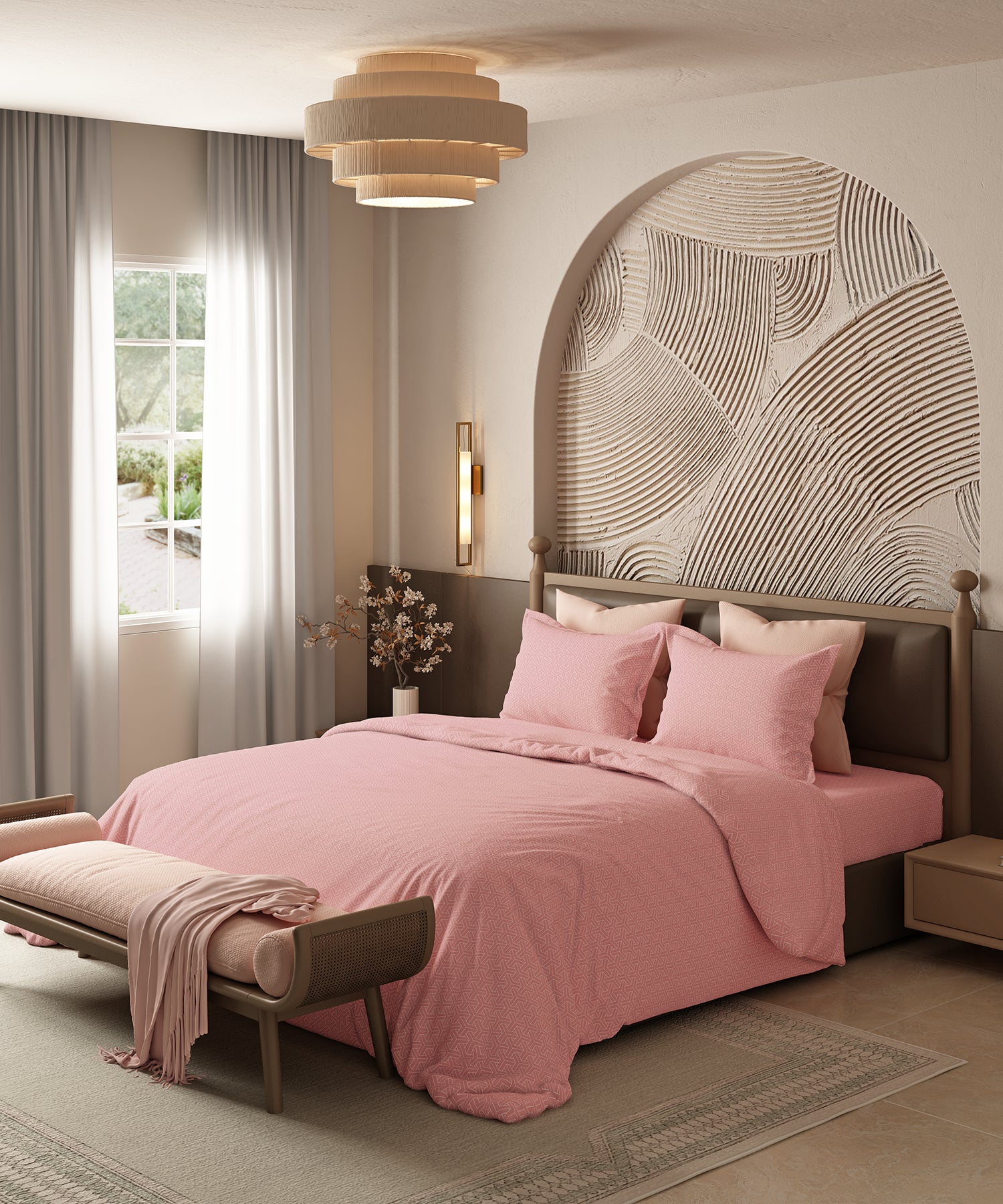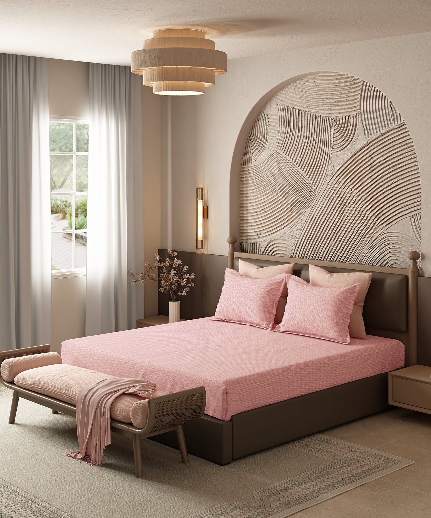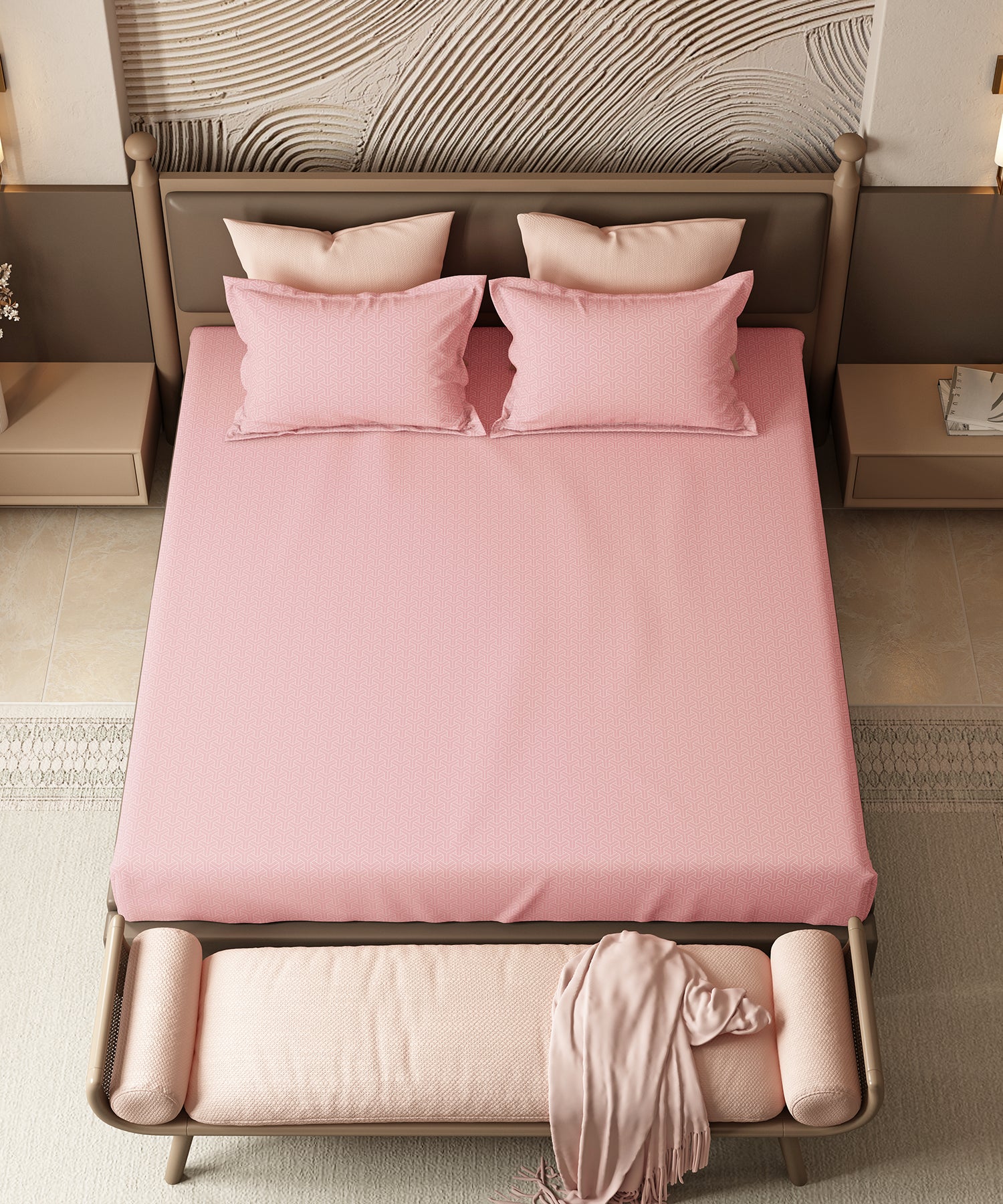 Home Essential Pastel Poetry Geo Bedsheet, Maison Peony|144TC Cotton| 2 Pillow Covers