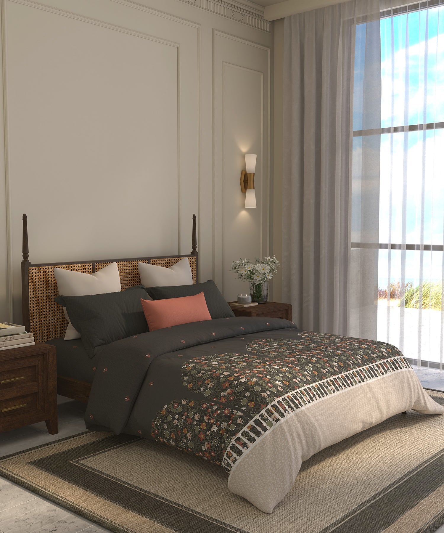 A celebration of heritage in every thread: Inspired by the timeless beauty of Suzani art, this bedsheet set brings the soul of tradition into your modern home. The swirling florals and bold motifs echo generations of craftsmanship, adding a rich cultural charm to your bedroom.