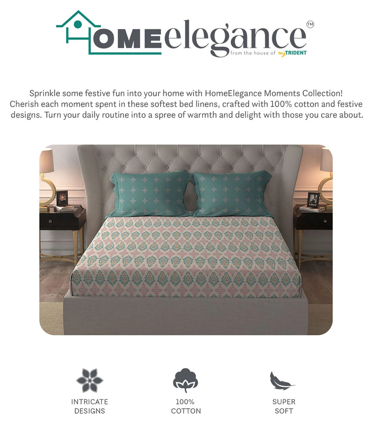 Celebrate life’s special moments with the Home Elegance Moments Bedsheet Collection. Crafted from 100% cotton with a soft, breathable texture, these bedsheets are perfect for everyday comfort and thoughtful gifting. Designed in vibrant patterns, they bring warmth, charm, and practicality to every home.