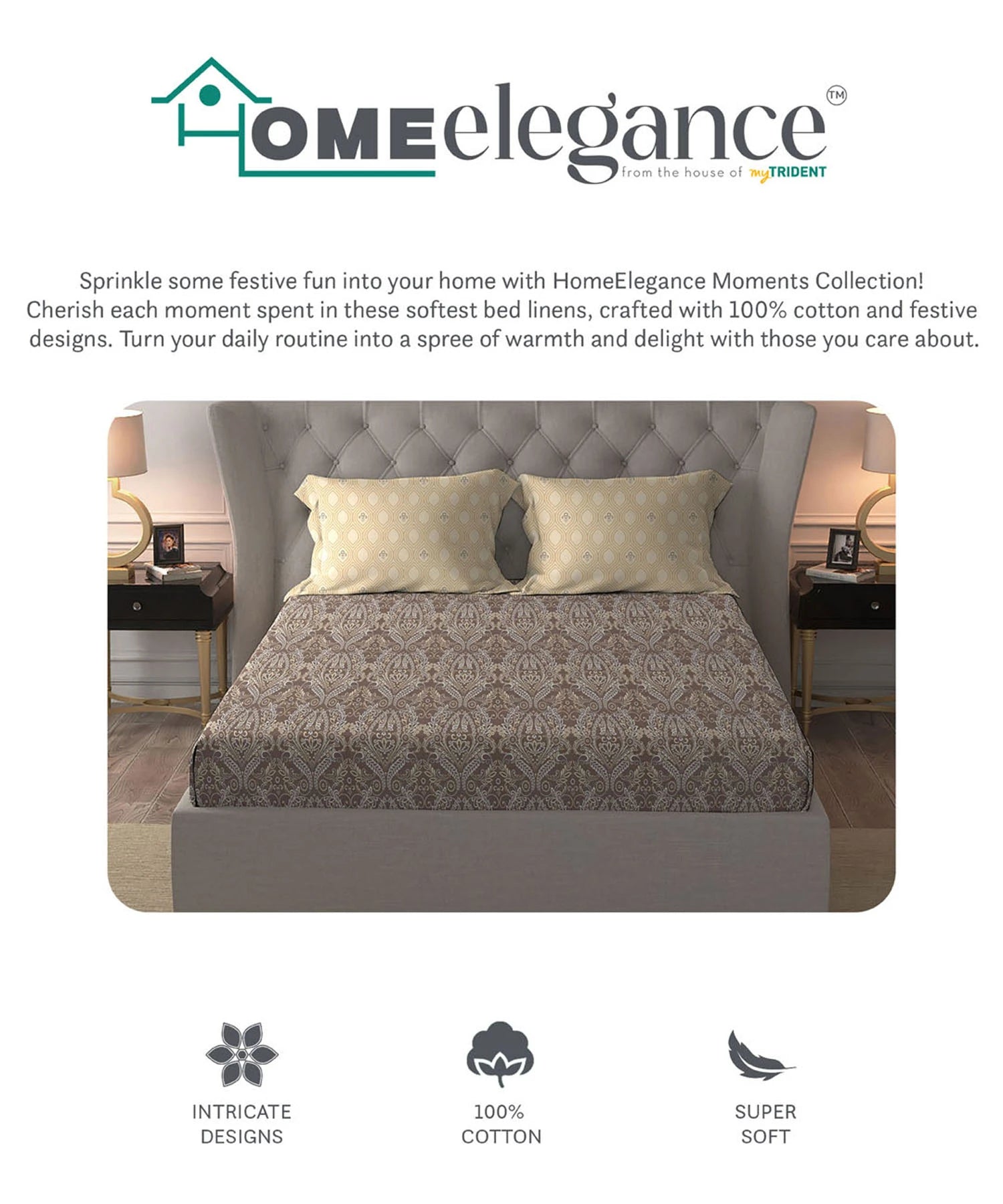 Moments Queen Bedsheet Set,Irene Mocha |120 TC Cotton