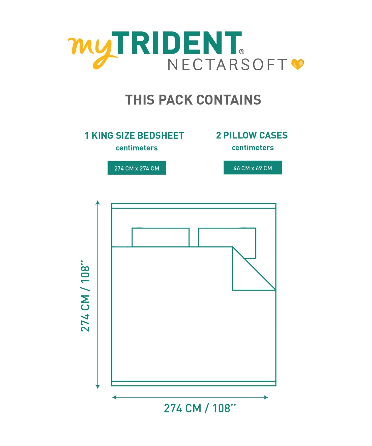 Size of the Product: 1 Bedsheet (274 CM X 274 CM) & 2 Pillow Covers (46 CM x 69 CM)