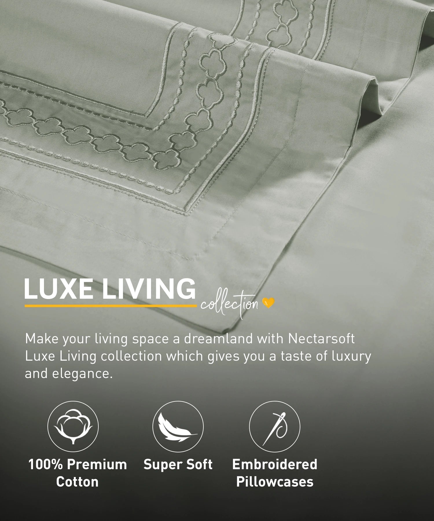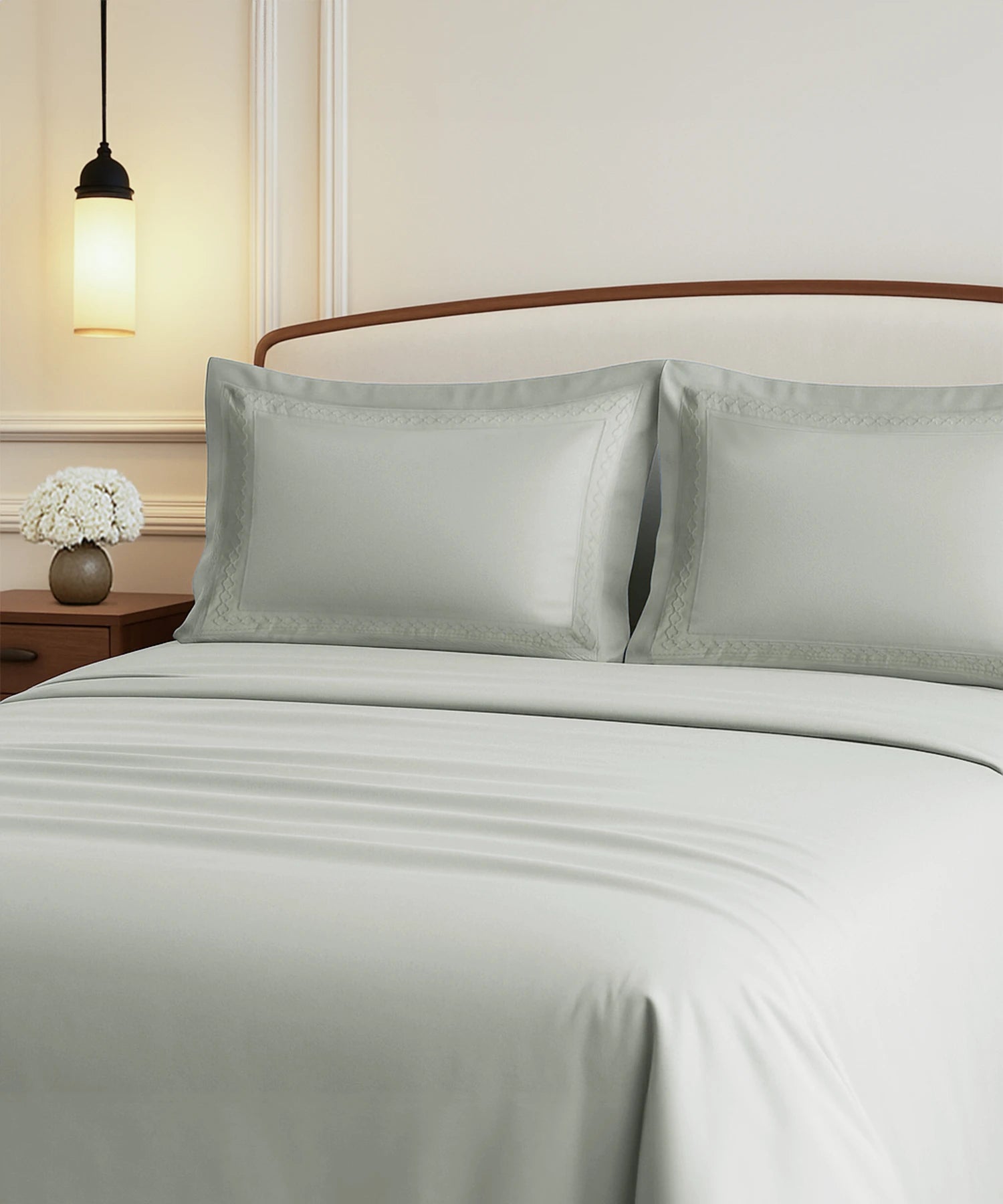 Nectarsoft Luxe Living Solid King Bedsheet Set, Watson, Desert Sage|300 TC Cotton| 2 Pillow Cover