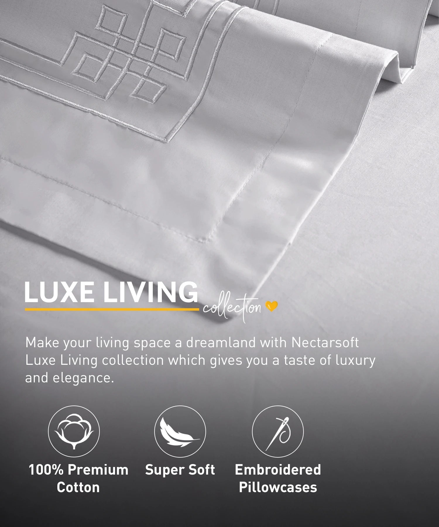Nectarsoft Luxe Living Solid King Bedsheet Set, Windsor, Silver Cloud|300 TC Cotton| 2 Pillow Cover