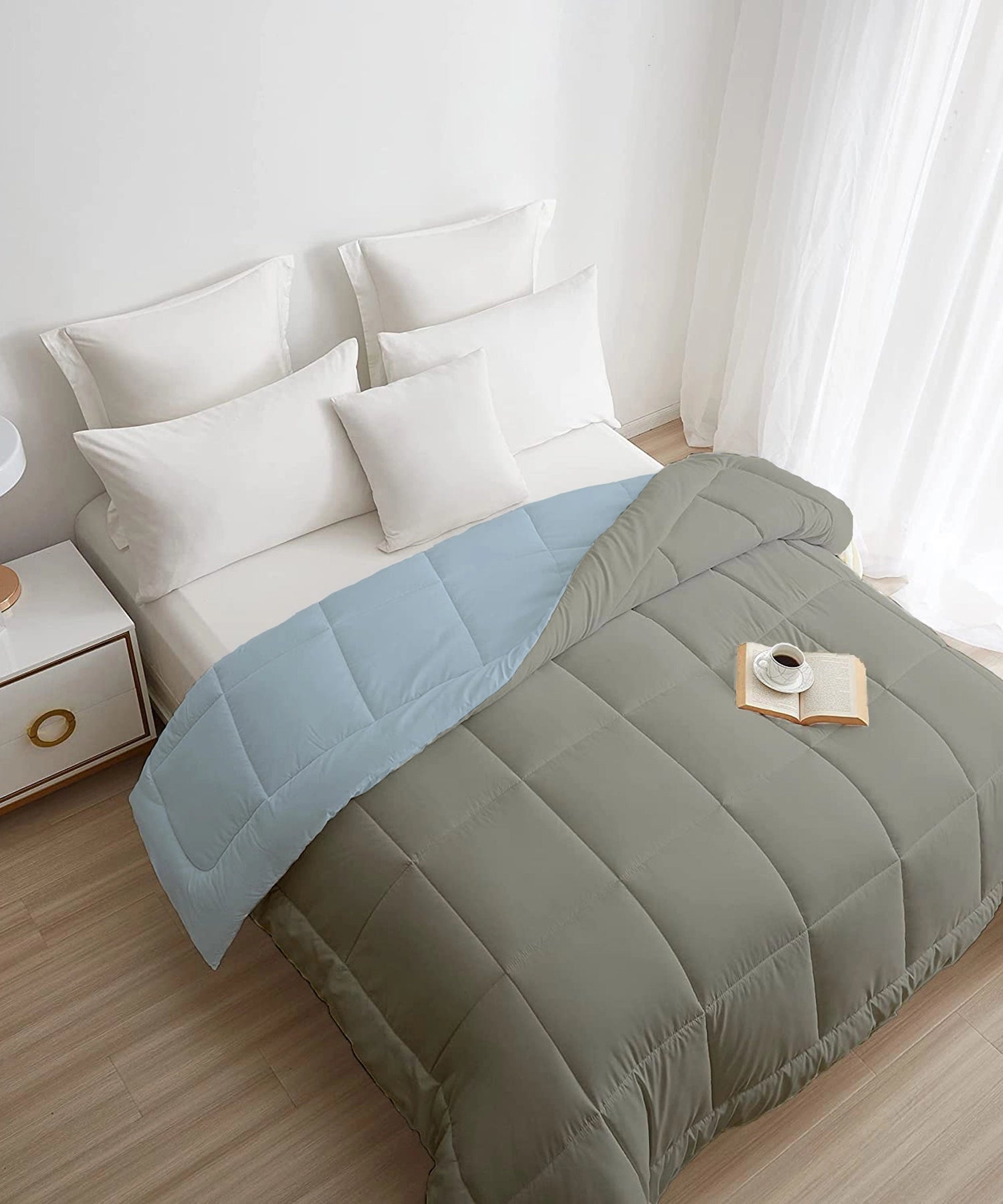 Soft Comfort Solid Double AC Blanket/Comforter, Blue Fog|200 GSM Micro Polyester|Reversible