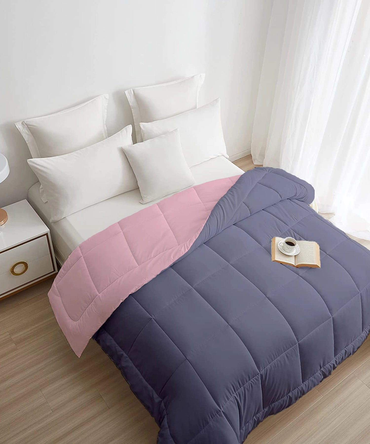 Soft Comfort Solid Double AC Blanket/Comforter, Rose Dust|200 GSM Micro Polyester|Reversible